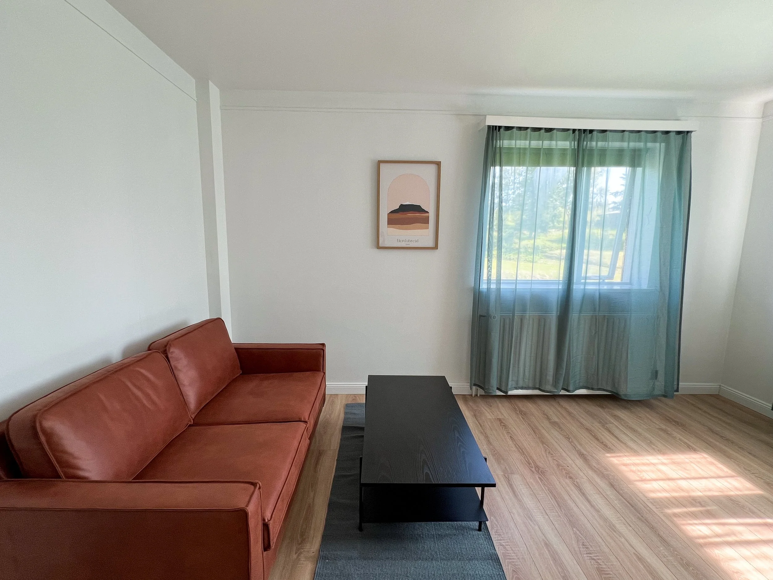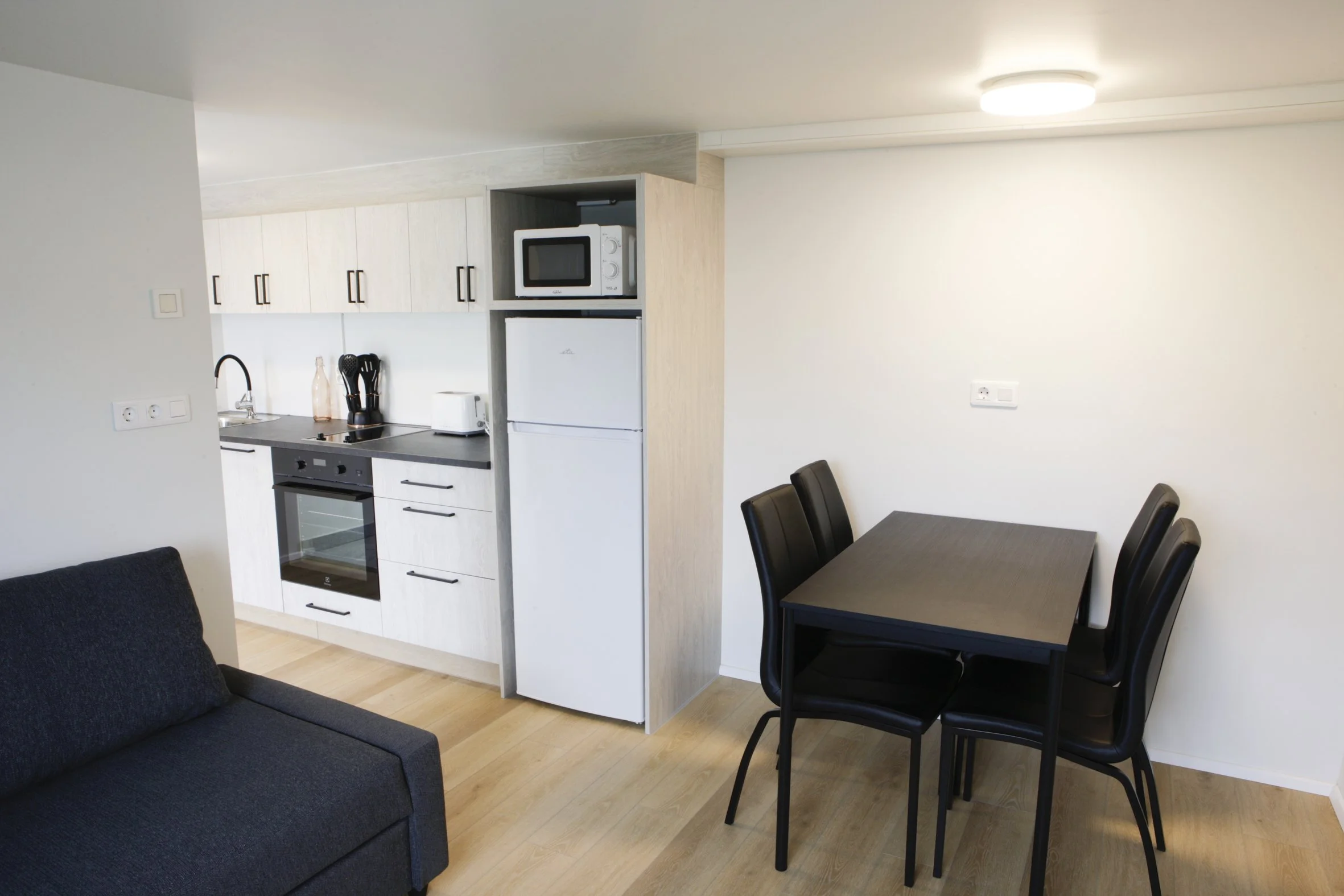45 square meter apartment, accommodating up to 3 adults. It features 1 bedroom and a living room with a sofa bed.